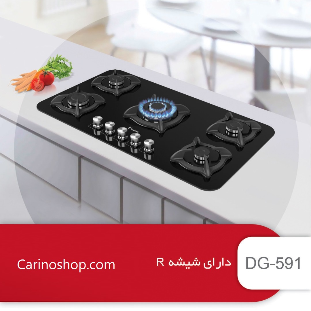 اجاق گاز صفحه ای ( رومیزی ) Datees داتیس DG-591 از جنس شیشه سکوریت دور تراش ، با 5 شعله ،  و از قطعات با کیفیت ایتالیایی ساخته شده است .