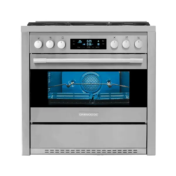 مشخصات و قیمت اجاق گاز مبله دوو DGC5-2111N 5 شعله با سر شعله های ایتالیایی ساباف، فن گردش هوای داغ و المنت برقی (توربوفن)، درب گرمخانه کشویی و دو شعله زمان دار