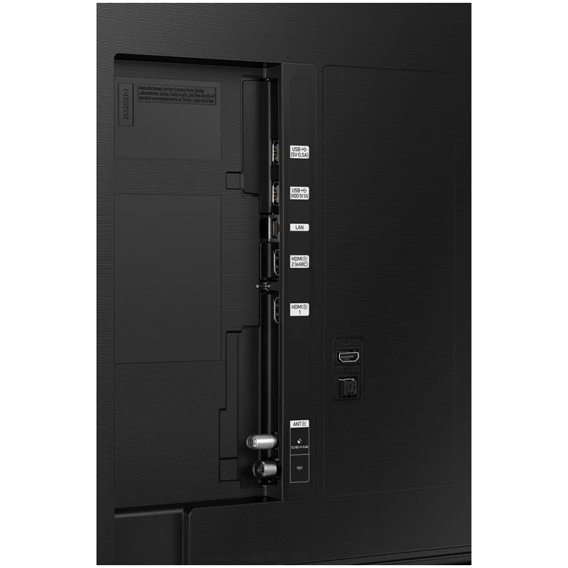 علاوه بر 3 پورت HDMI 2.0 و 2 پورت USB، این مدل دارای پورت LAN، درگاه خروجی صوتی اپتیکال و ورودی آنتن است که برای استفاده‌های مختلف و اتصال به دستگاه‌های جانبی گزینه‌های گسترده‌ای را در اختیار کاربران قرار می‌دهد.