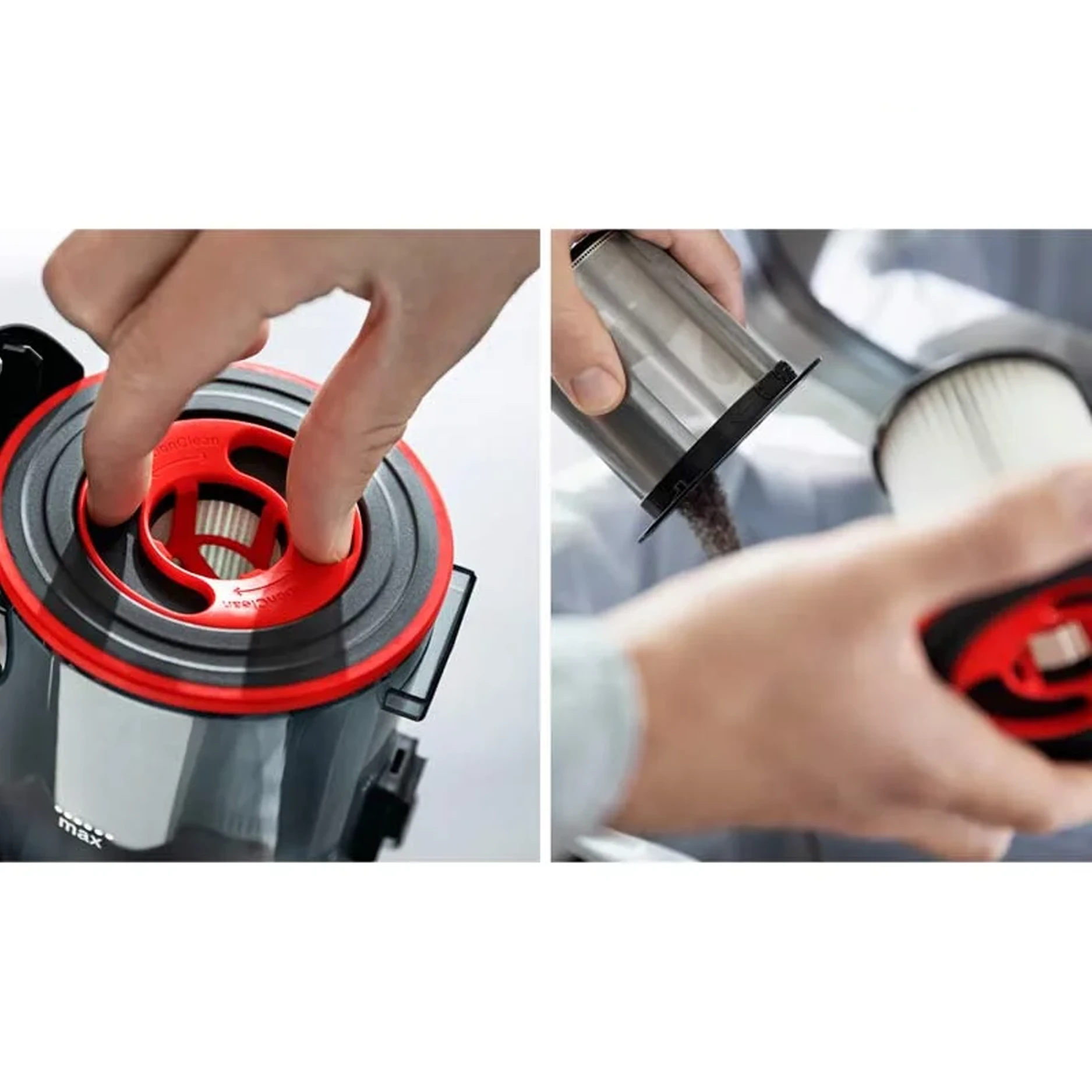 این مدل از سیستم فیلتراسیون Bagless بهره میبرد و به کمک فناوری RotationClean، تخلیه مخزن گردوغبار تنها با چرخاندن یک دکمه انجام میشود. این سیستم نیازی به شستوشوی فیلتر ندارد و در عین حال، تخلیهای کاملاً بهداشتی و بدون تماس با گردوغبار فراهم میکند.