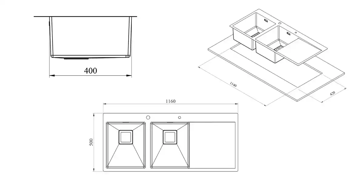 ابعاد برش سینک 114 * 48 سانتی‌متر است.