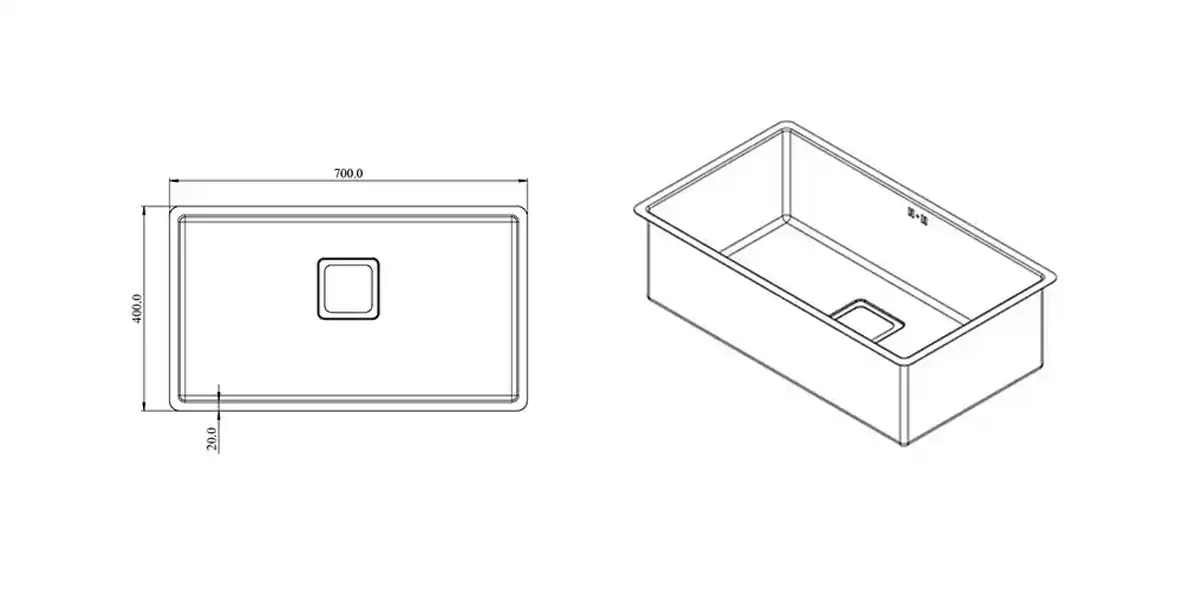 ابعاد استاندارد و طراحی زیبای سینک باکسی کن R10 40*70