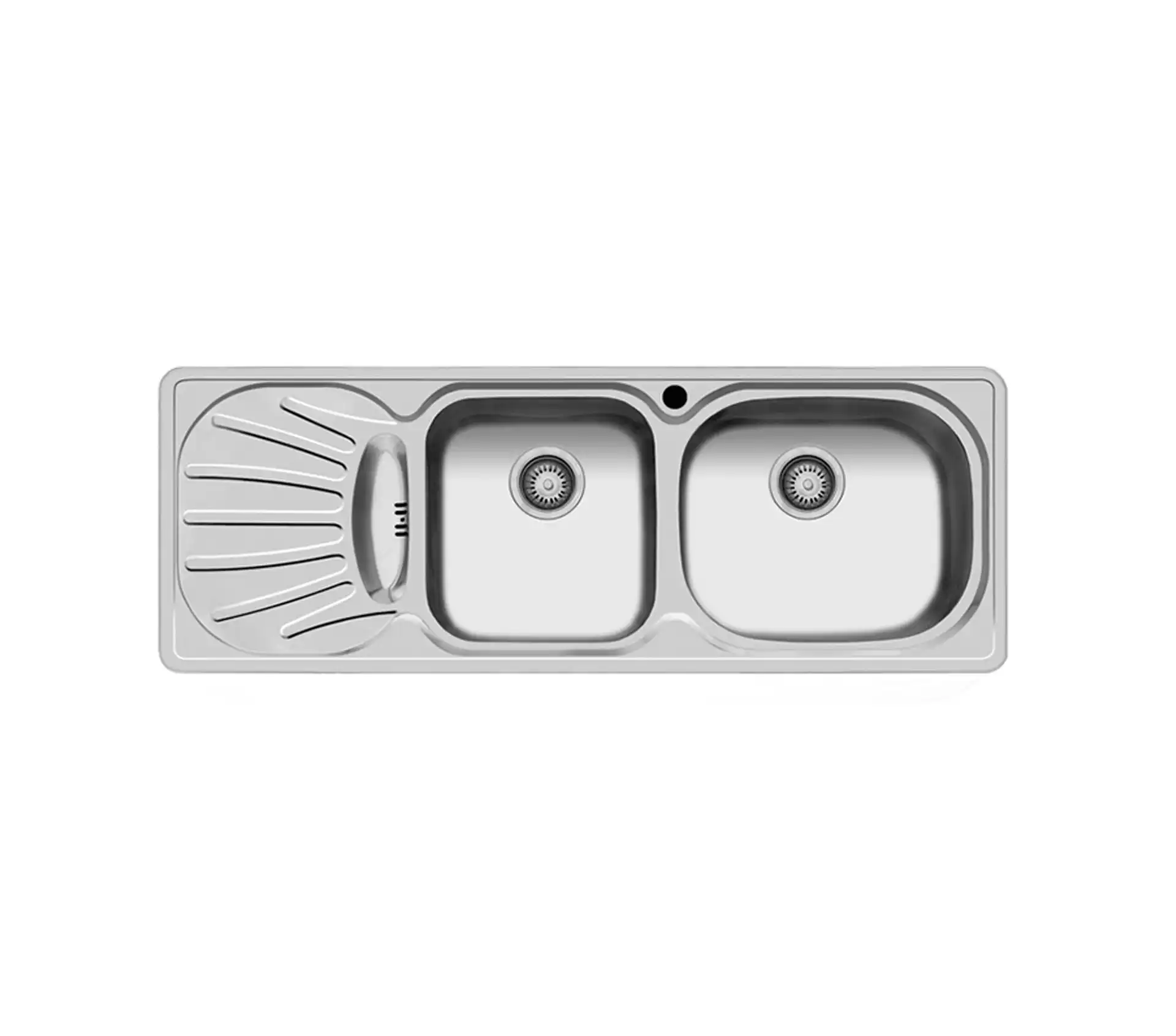 خرید و قیمت سینک ظرفشویی توکار استیل اخوان کد 18 با عمق 18 سانتیمتر و طول 120 سانت با دو لگن، یک سینی