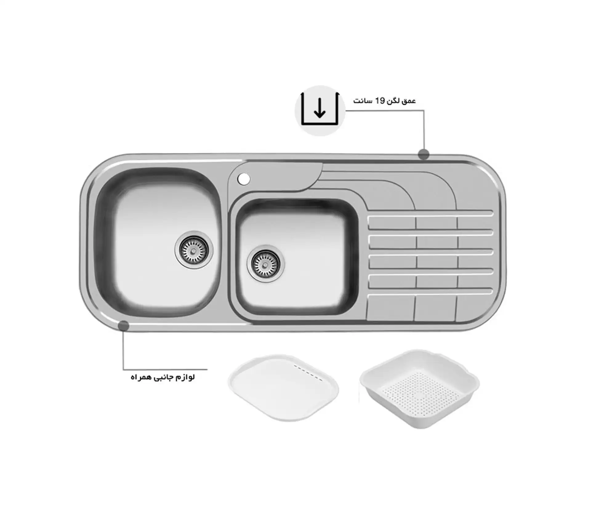 1. طراحی زیبا و کاربردی: این سینک به گونه‌ای طراحی شده که نه تنها از نظر زیبایی بلکه از نظر عملکرد نیز بهترین انتخاب است.