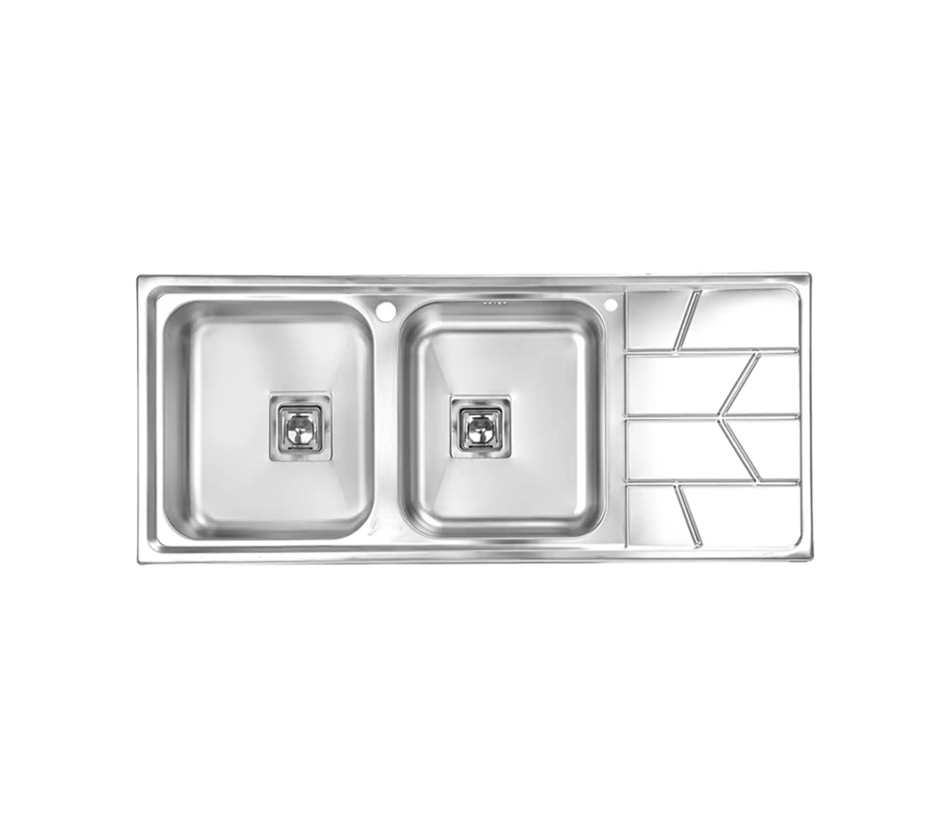 خرید و قیمت سینک ظرفشویی توکار باکسی استیل اخوان کد 388  با عمق 15 سانتیمتر و طول 120 سانت با دو لگن، یک سینی