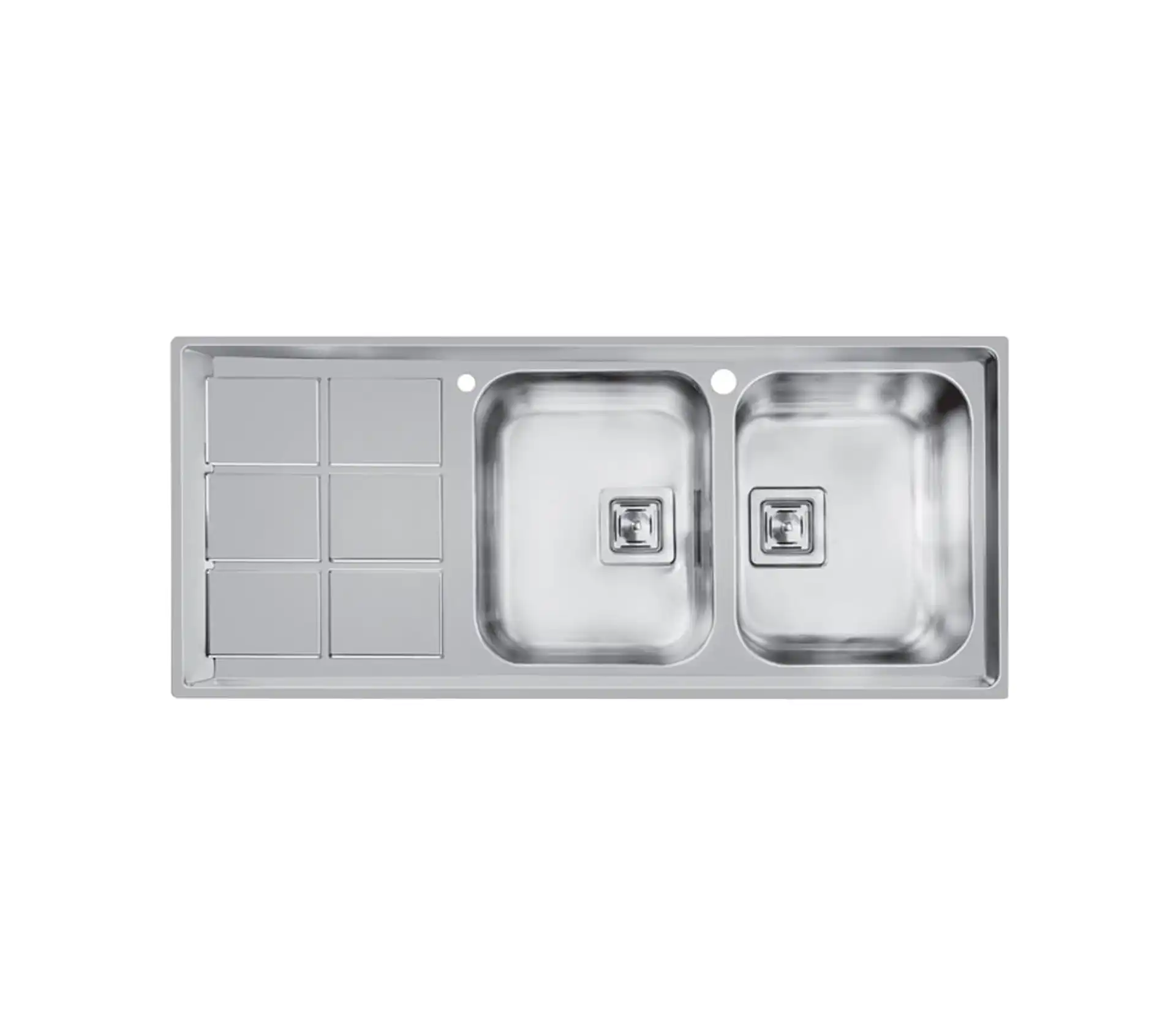 خرید و قیمت سینک ظرفشویی توکار باکسی استیل اخوان کد 500 با عمق 22 سانتیمتر و طول 120 سانت با دو لگن، یک سینی