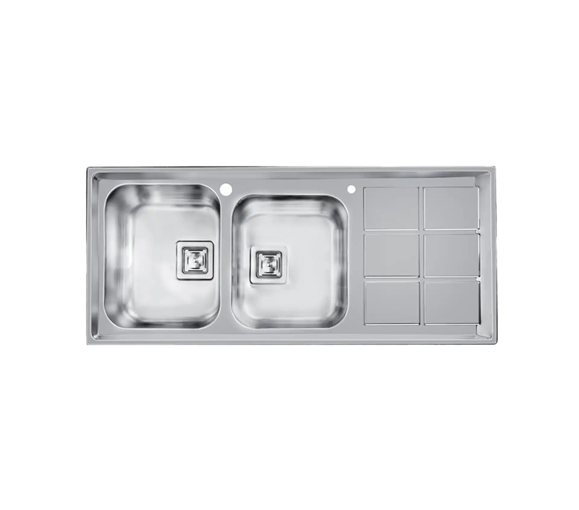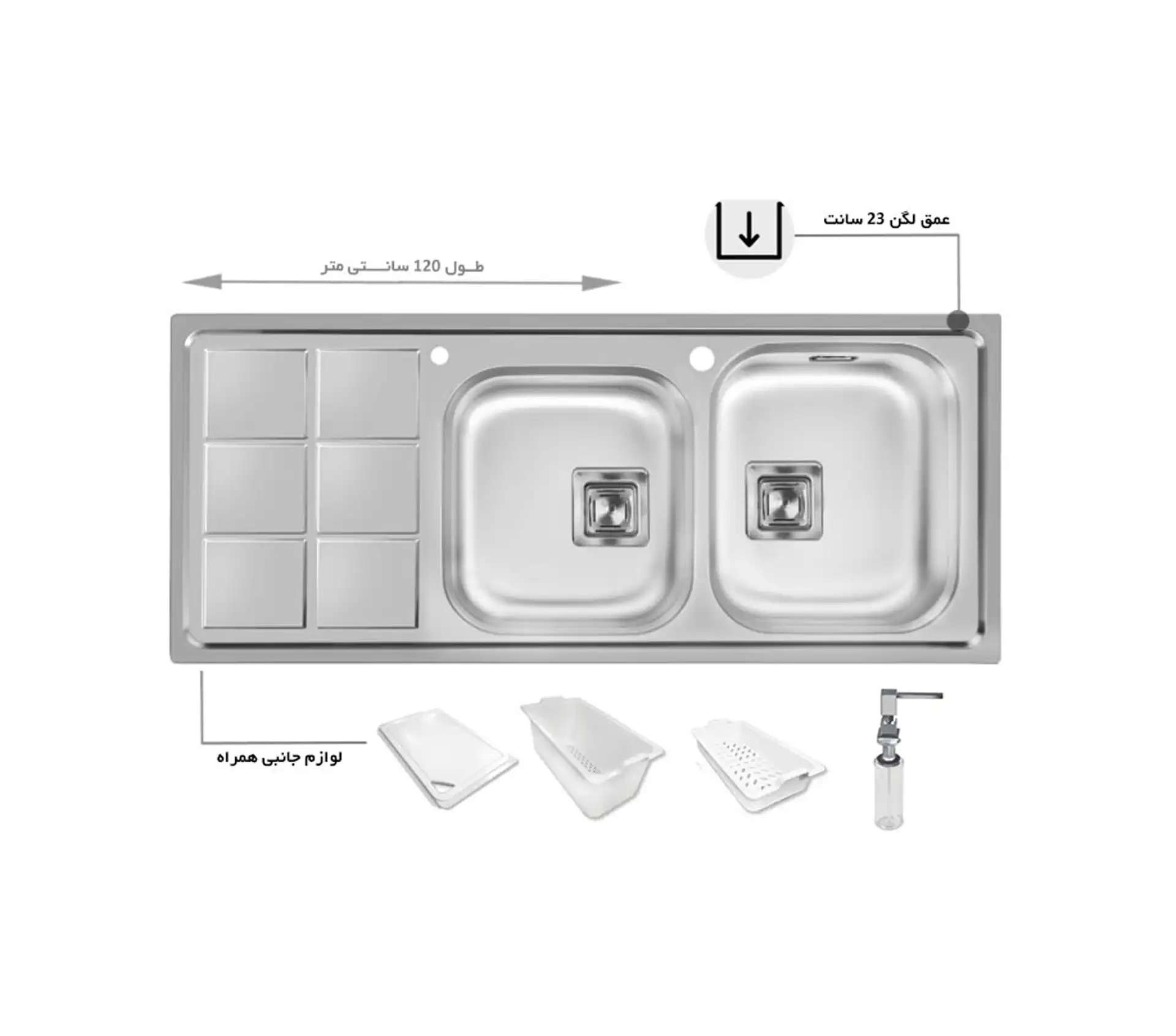 خرید و قیمت سینک ظرفشویی توکار باکسی استیل اخوان کد 501 با عمق 22 سانتیمتر و طول 120 سانت با دو لگن، یک سینی