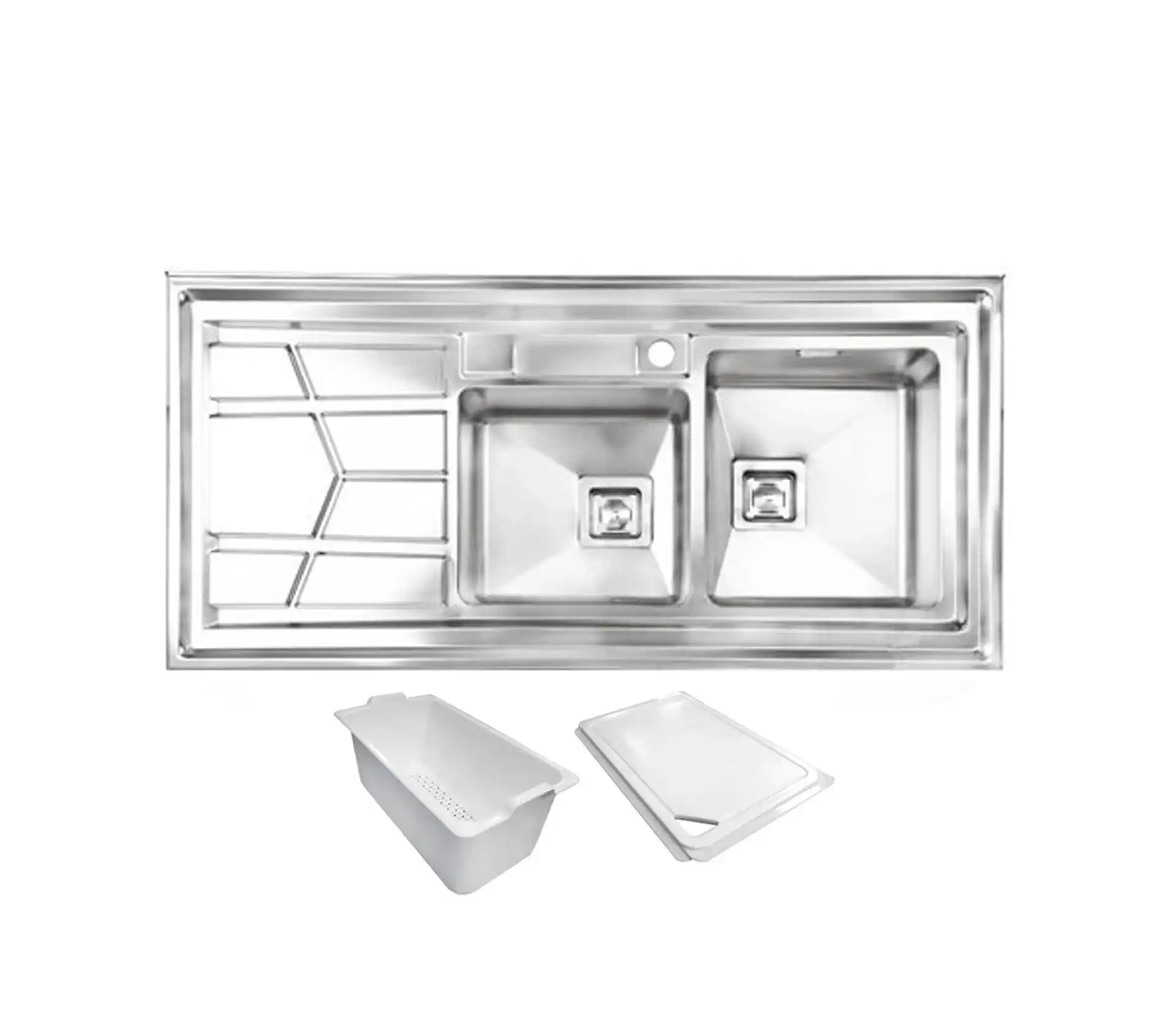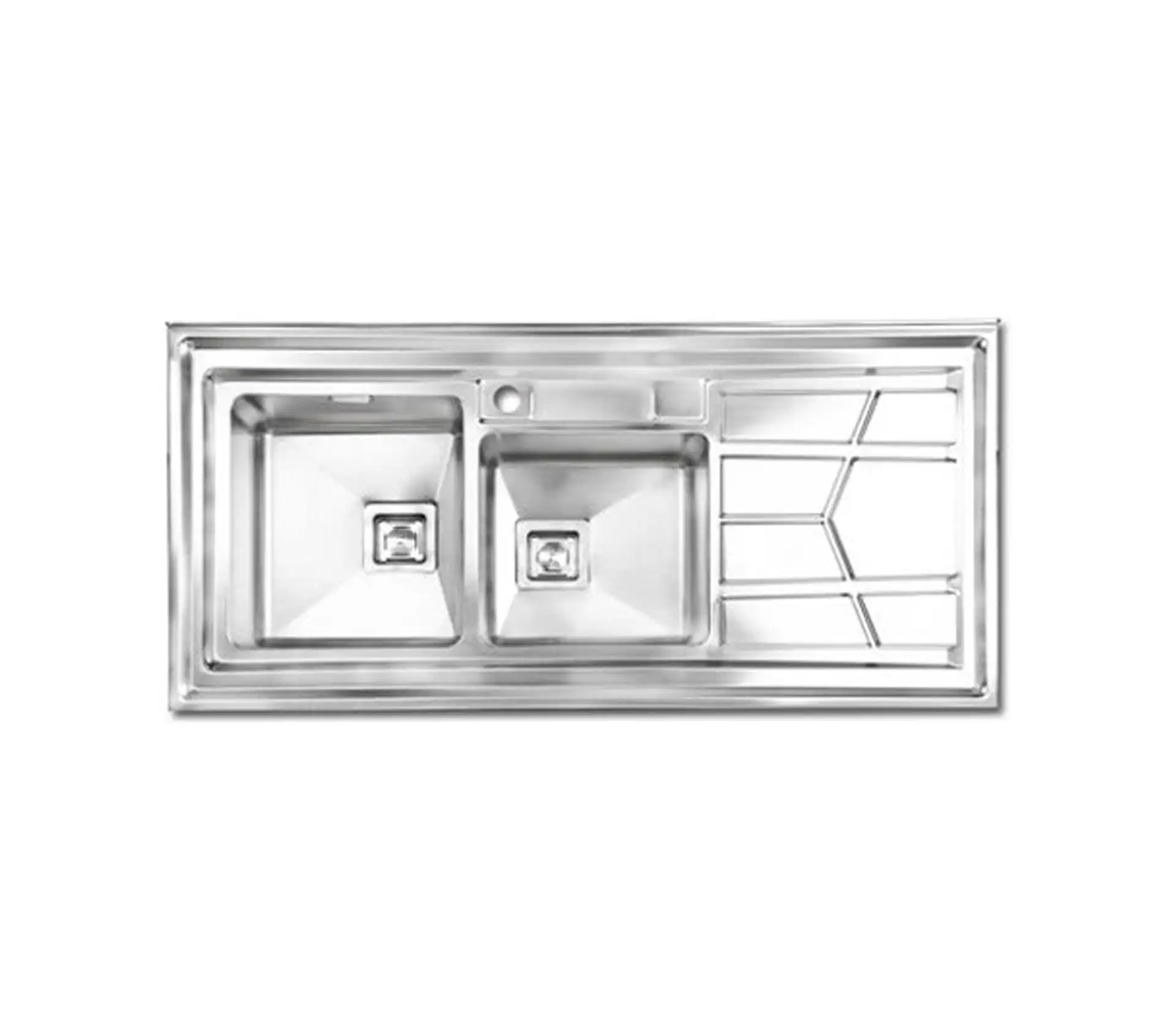 خرید و قیمت سینک ظرفشویی روکار باکسی استیل اخوان کد 303S  با عمق 20 سانتیمتر و طول 120 سانت با دو لگن، یک سینی