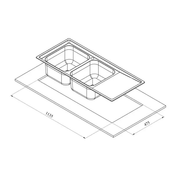 ابعاد برش سینک 113 * 47 سانتی‌متر است.
