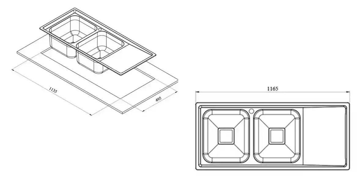 ابعاد برش سینک 116.5 * 51 سانتیمتر است.