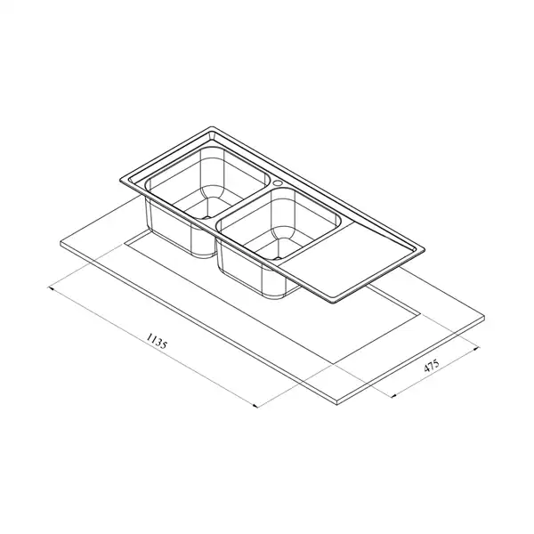 ابعاد برش سینک 113.5 * 47 سانتی‌متر است.