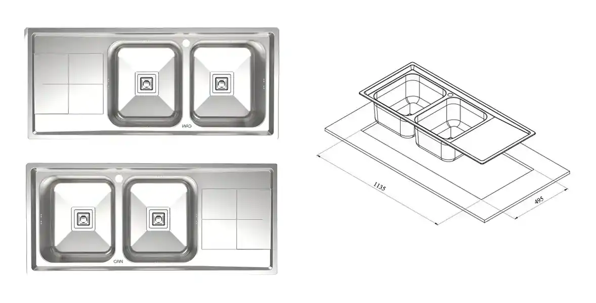 ابعاد برش سینک 113.5 * 47.5 سانتی‌متر است.