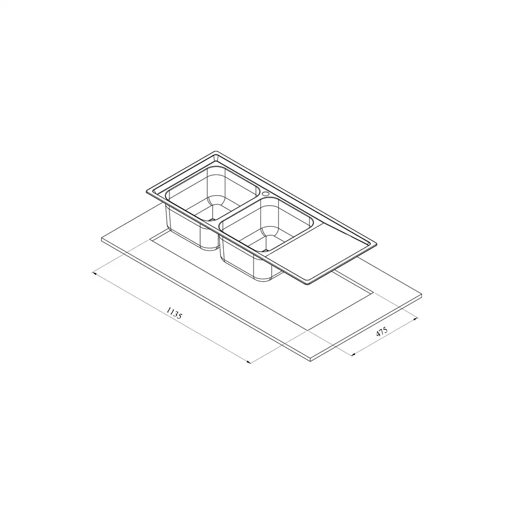ابعاد برش سینک 113.5 * 47.5 سانتی‌متر است.