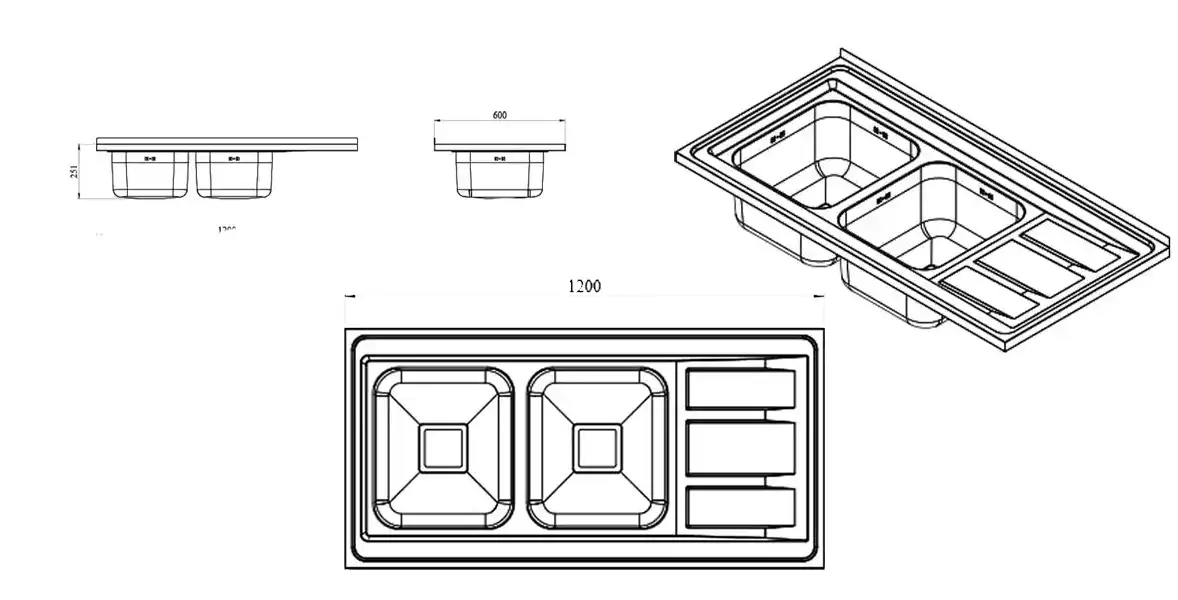 • ضخامت سینک 0.8 میلیمتر می‌باشد که مقاومت قابل قبولی در برابر فشار آب و وزن ظروف از خود نشان می‌دهد.