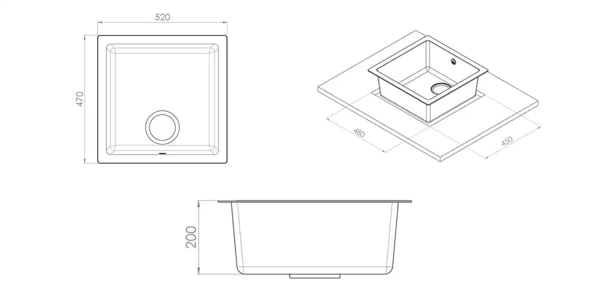 ابعاد برش سینک 48 * 45 سانتی‌متر است.