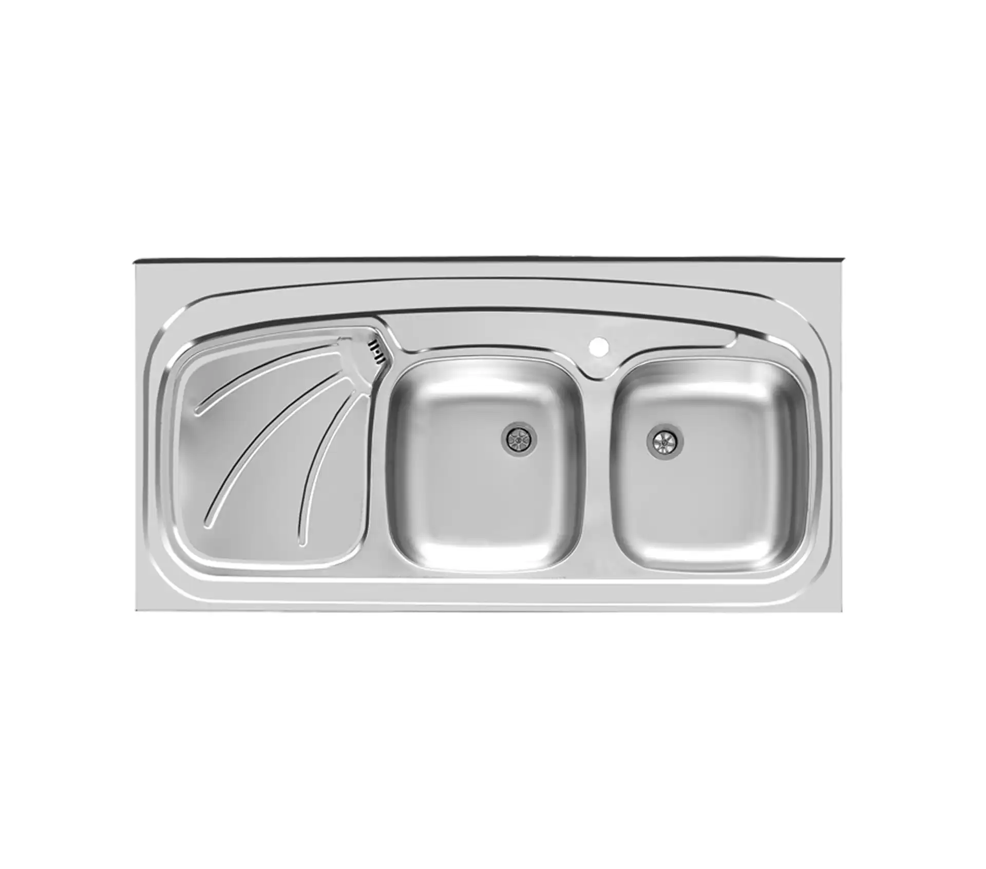 خرید و قیمت سینک ظرفشویی توکار استیل اخوان کد 121 با عمق 14 سانتیمتر و طول 120 سانت با دو لگن، یک سینی