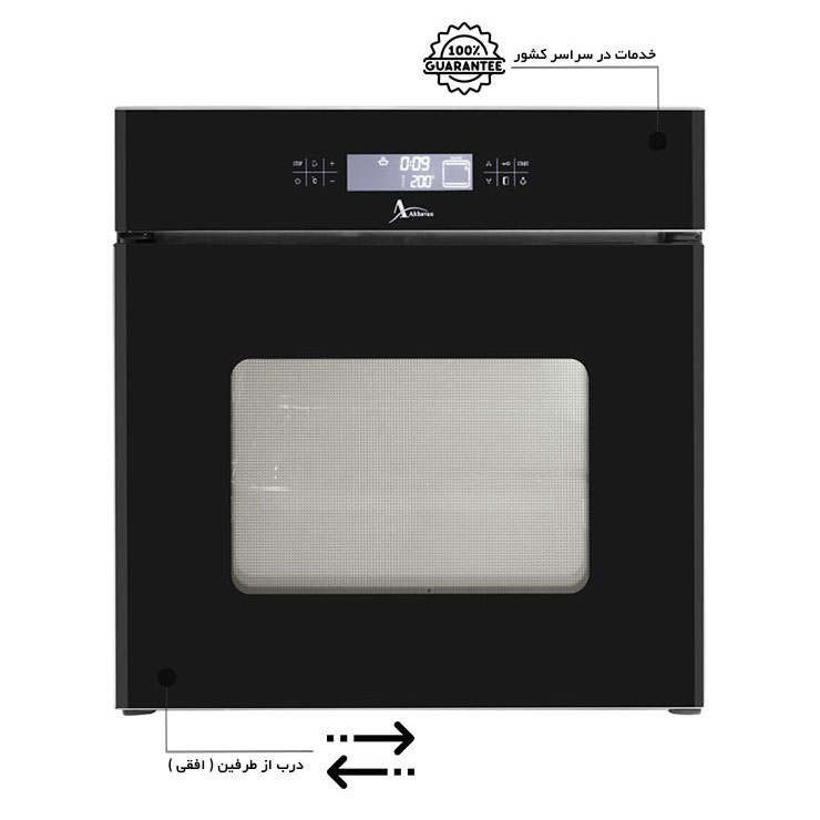 مشخصات فر توکار برقی اخوان مدل F36 به رنگ مشکی و جنس و نمای ظاهری شیشه با ظرفیت 70 لیتر و 12 برنامه پخت و درب 4 جداره. خریدی امن از نمایندگی فروش اخوان