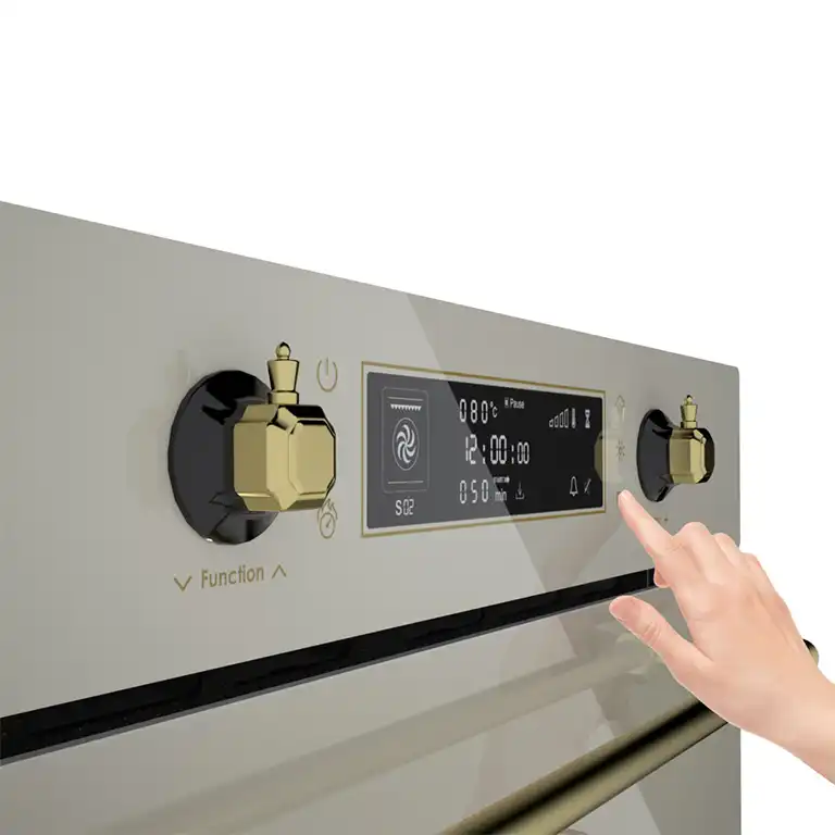 نمای شیشه همواره جزو دکور های پرطرفدار به حساب می آید. فر توکار آلتون مدل V540W با نمای ظاهری شیشه 4 جداره سکوریت مقاوم به حرارت و رنگ سفید ، ظاهری جذاب به آشپزخانه شما خواهد داد. دستگیره آلومینیومی نیز به خوبی خود را با ظاهر فر هماهنگ نمود است.