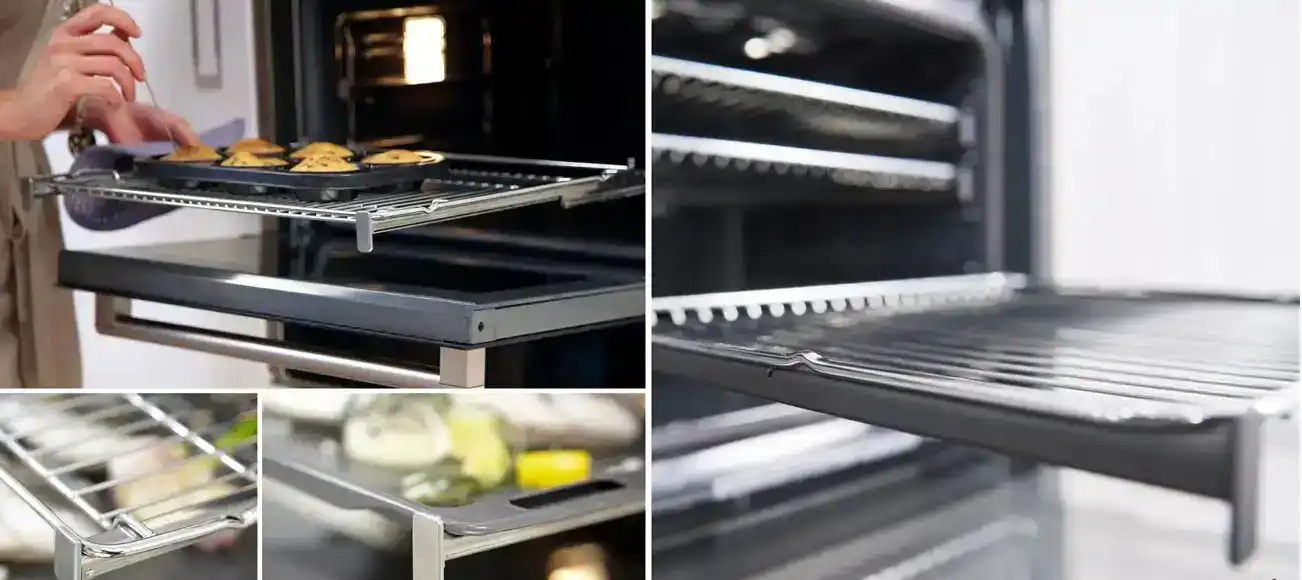با استفاده از این ریل‌ها می‌توانید به آسانی سینی فر را بیرون کشیده یا به داخل فر برگردانید.