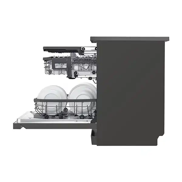 این محصول از طراحی زیبا و مدرنی برخوردار است که بسیار نوآورانه طراحی شده، به لطف نوع طراحی که شیارهایی در کنارهها وجود دارد که باعث کاهش لرزش و تکان خوردن ظرفشویی ال جی 14 نفره میشود. این ظرفشویی ال جی دارای یک صفحه نمایش LED لمسی و دکمه های لمسی برای انتخاب برنامه مورد نظر است.