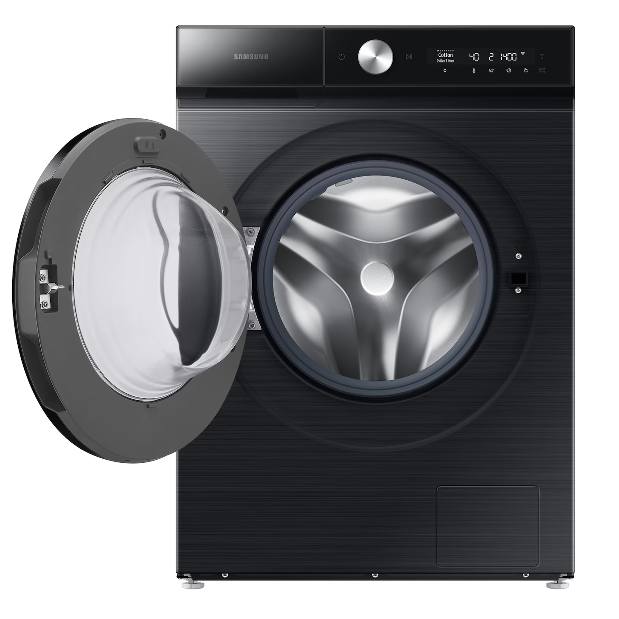 طراحی SpaceMax™ به سامسونگ این امکان را داده که بدون افزایش ابعاد خارجی دستگاه، فضای داخلی درام را افزایش دهد. عمق 600 میلیمتری مخزن اجازه میدهد لباسهای بزرگ و حجیم به راحتی شسته شوند. طراحی مینیمال و رنگ مشکی خاویاری نیز جلوهای لوکس و هماهنگ با دکوراسیونهای مدرن به فضای خانه میبخشد.