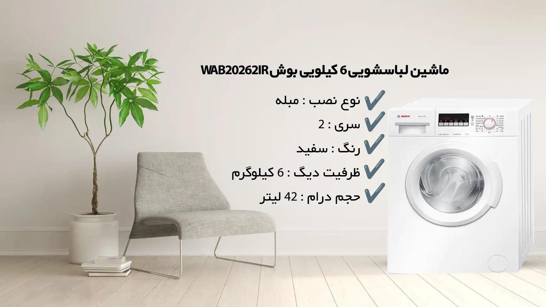 مشخصات فنی ماشین لباسشویی بوش WAB20262IR