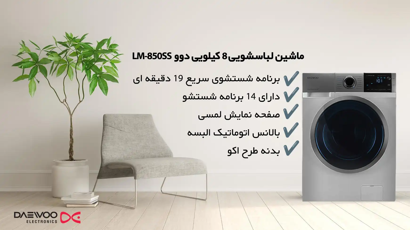 خلاصه ویژگی های ماشین لباسشویی دوو LM-850SS