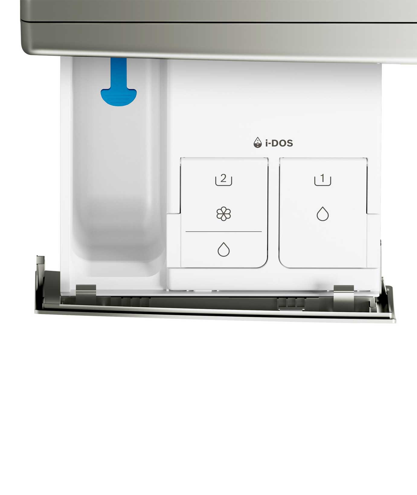 در سمت چپ ولوم سلکتور محفظه کشویی قرار گیری پودر و مواد شستو قرار دارد .