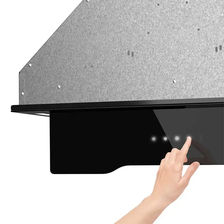نمای ظاهری هود مخفی آلتون 801B متناسب با طراحی مدرن و شیک آشپزخانهها است. این هود به طراحی زیبا و الگویی متقارن که با سایر اجزای آشپزخانه دارد. حس مدرن بودن و استایلی جذاب تر را به آشپزخانه شما میبخشد. هود مخفی آلتون 801B از جنس شیشه و رنگ مشکی ساخته شده. درب این محصول که از جنس شیشه است با یک فریم استیل به رنگ مشکی احاطه شده به خوبی از سطح شیشه ای محافظت میکند. صفحه کنترل به صورت لمسی در نظر گرفته شده تا علاوه بر عملکرد آسان، بتوان نظافت را به بهترین شکل انجام داد. خرید هـود مخفی آلتون H801B به آشپزخانه شما ظاهری ساده، زیبا و دلپذیر میبخشد.