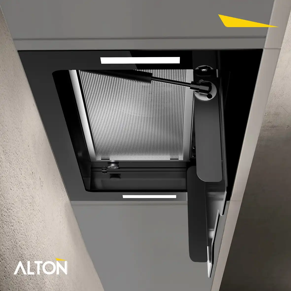 امروزه در ساخت لوازم آشپزخانه از امکاناتی استفاده میشود تا مصرف کننده آن تجهزات بتوانند در راحتترین شکل ممکن از آن استفاده کند. یکی از این موارد استفاده از درب آسان باز شو است. هود مخفی آلـتون 801 مشکی به درب آسان بازشو مجهز است تا شما به آسانی درب هود را باز کنید. باز کردن درب هود این امکان را میدهد علاوه بر عمکرد و کارایی حداکثری هود، بتوانید فیلترها را نیز تعویض یا نظافت کنید. عملکرد آسان باز شو بوسیله یک جک آرام بند در این هود امکان پذیر شده.