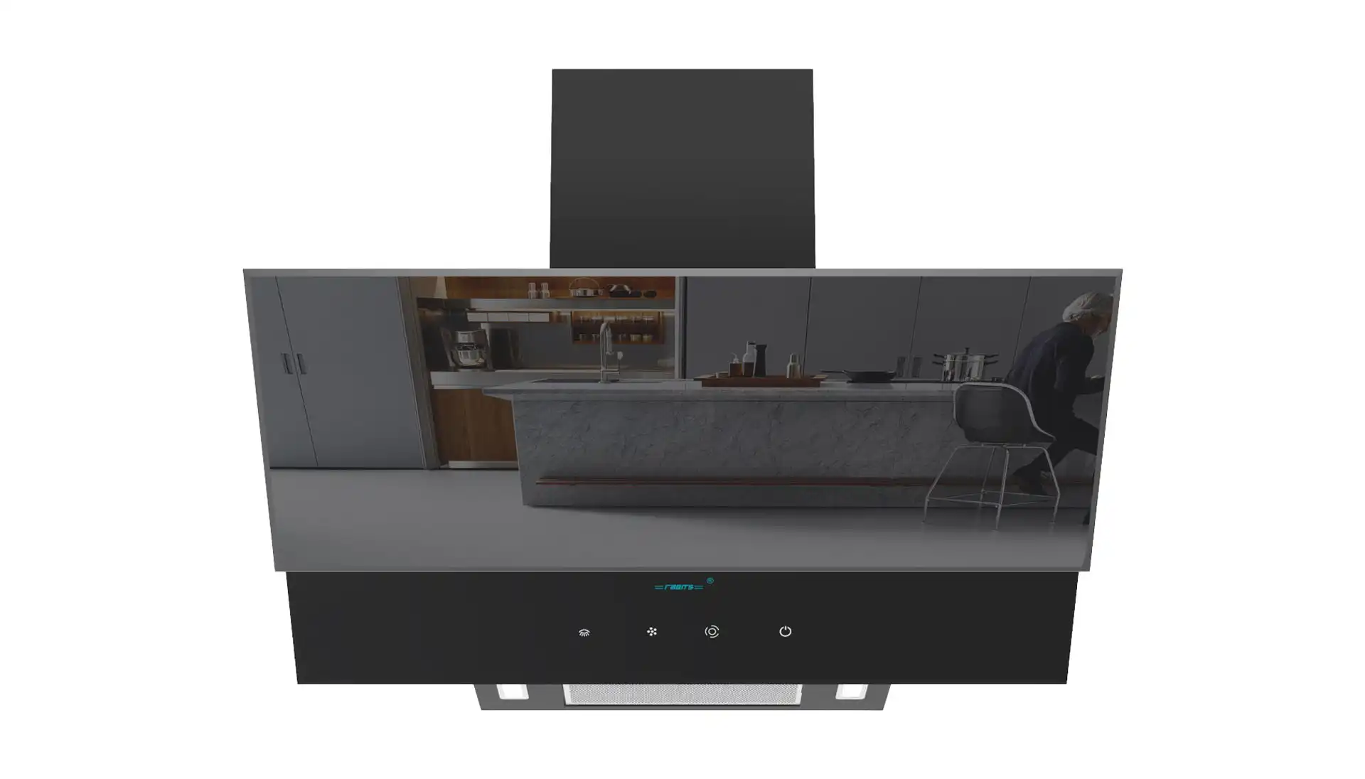 خرید و قیمت هود رابیتس مدل RH114 طراحی به صورت مورب، عرض 90 سانتیمتر از جنس شیشه، موتور فلزی 4 دور، به همراه ریموت کنترل، سنسور دود ، بو و حرارت.