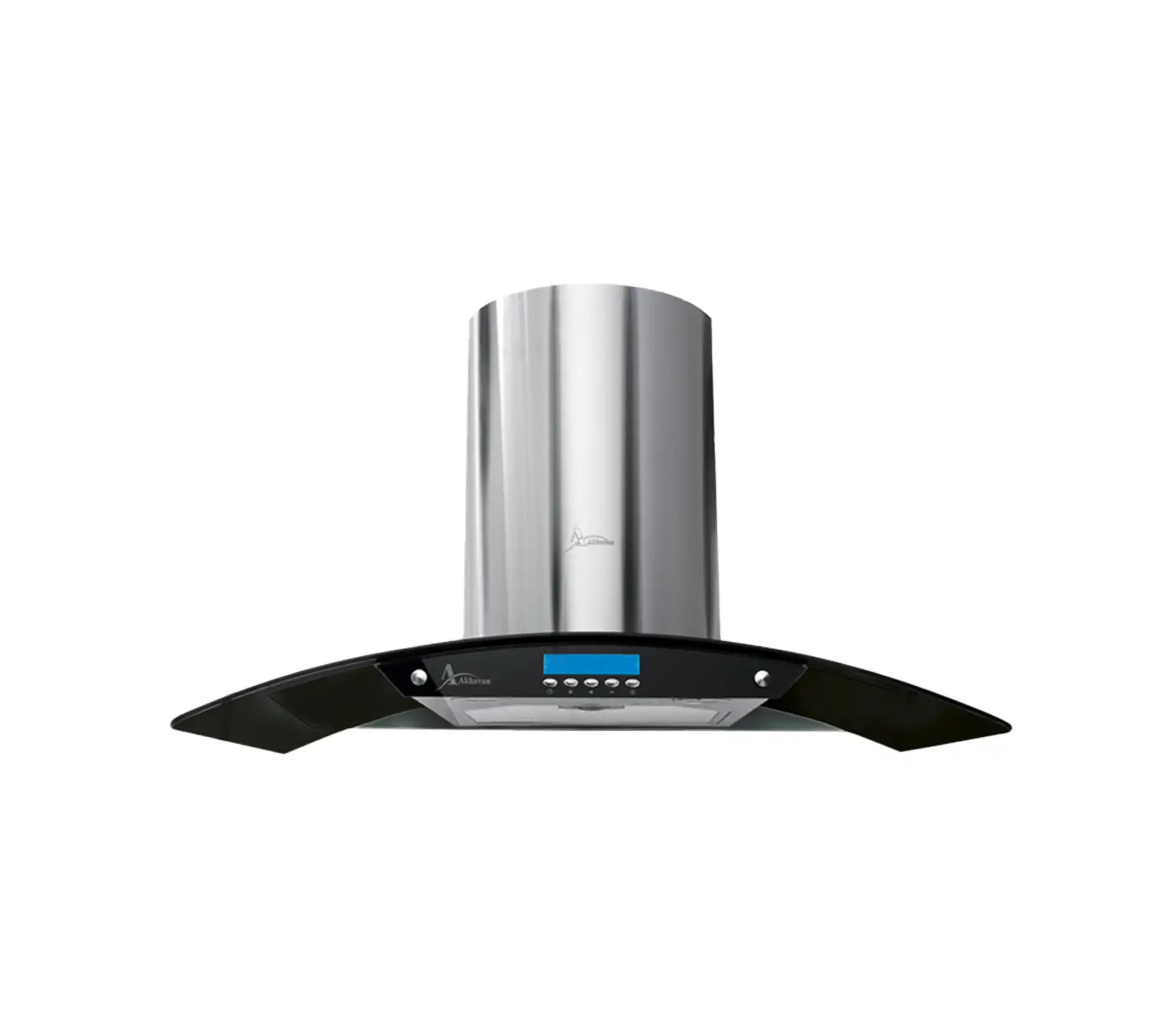خرید و قیمت هود آشپزخانه  اخوان مدل H11-G طراحی به صورت شومینه ای، عرض 90 سانتیمتر از جنس استیل-شیشه دودی، موتور فلزی 3 دور پلاستیک ، به همراه کنترل دستی ، و صفحه نمایش LCD.