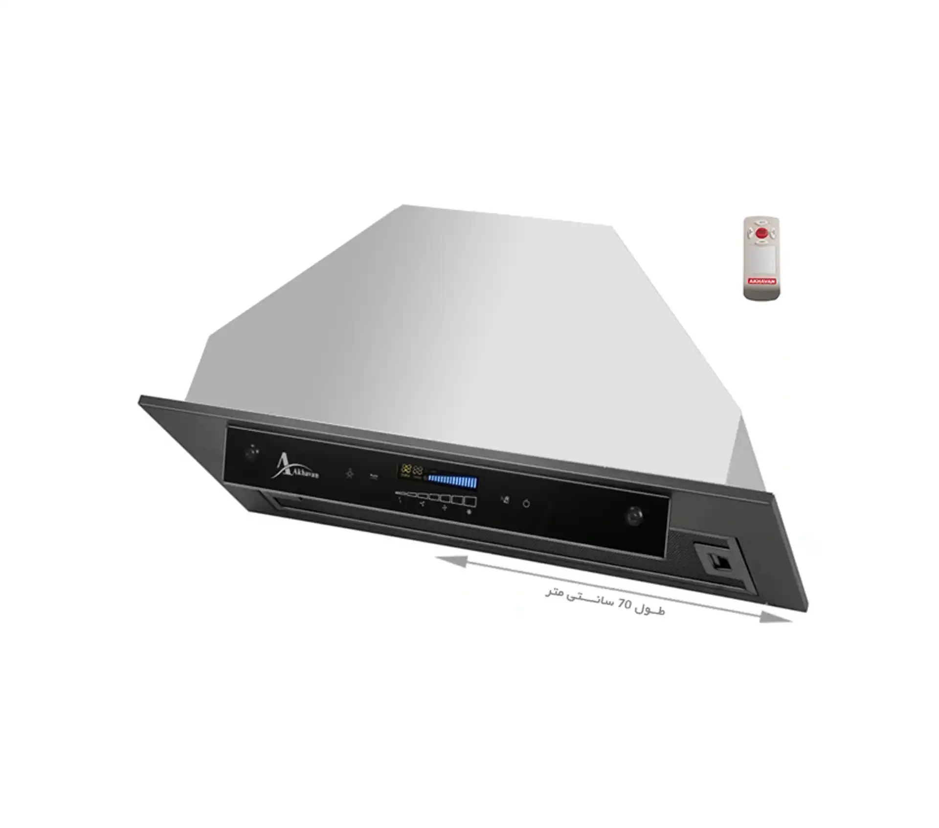 خرید و قیمت هود آشپزخانه  اخوان مدل H216 طراحی به صورت مخفی، عرض 70 سانتیمتر از جنس استیل ساده رنگ مشکی، موتور پلاستیک ، به همراه کنترل لمسی و ریموت کنترل از راه دور