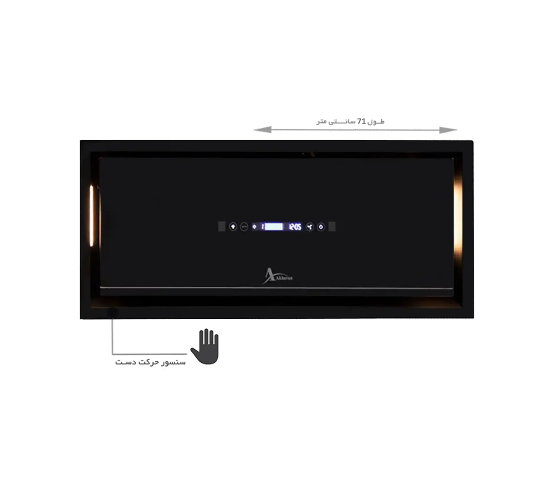 خرید و قیمت هود آشپزخانه  اخوان مدل H221 طراحی به صورت مخفی، عرض 70 سانتیمتر از جنس استیل/شیشه رنگ مشکی، موتور پلاستیکی ، به همراه کنترل لمسی و ریموت کنترل از راه دور