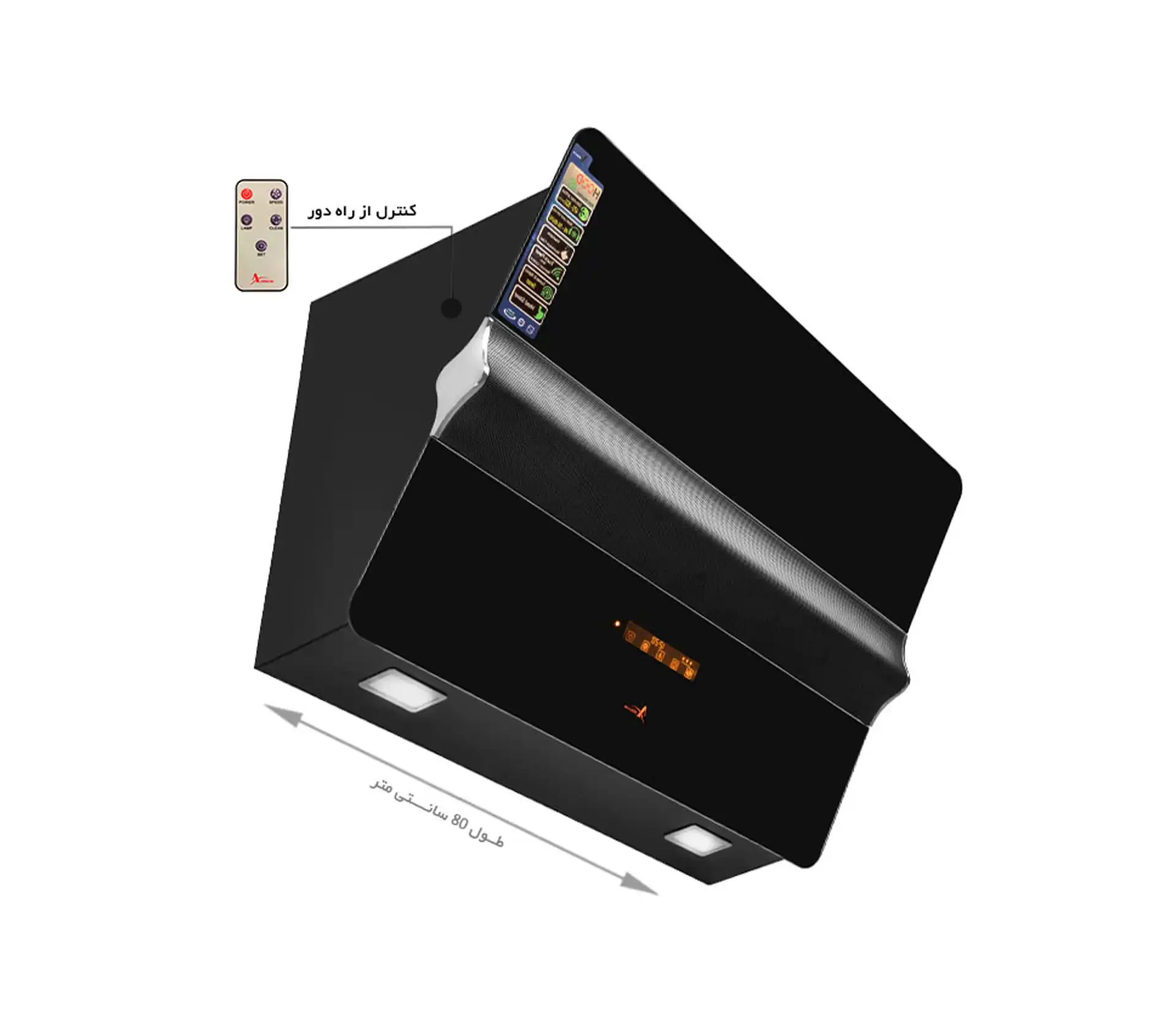 این هود دارای صفحهکلید لمسی با طراحی پیشرفته و ریموت کنترل از راه دور است که به کاربر امکان مدیریت آسان دستگاه را میدهد.