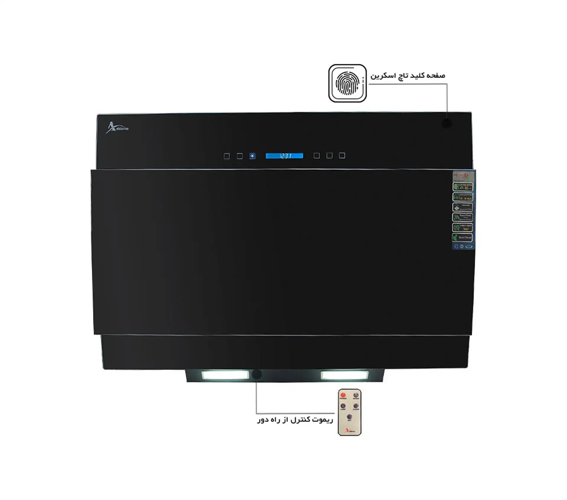 این هود دارای صفحه‌کلید لمسی با طراحی پیشرفته و ریموت کنترل از راه دور است که به کاربر امکان مدیریت آسان دستگاه را می‌دهد.