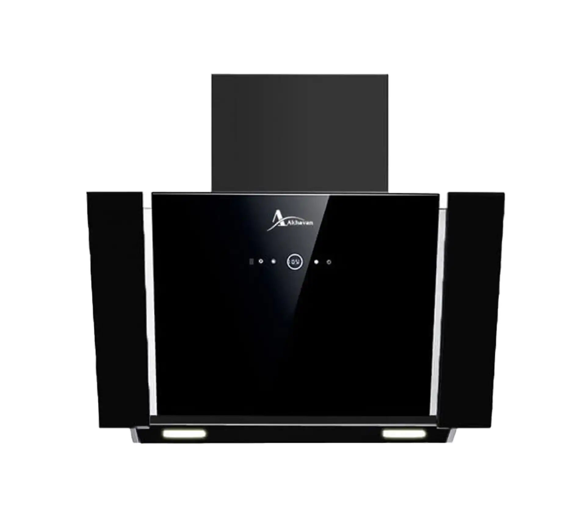 خرید و قیمت هود آشپزخانه  اخوان مدل H75 طراحی به صورت مورب، عرض 90 سانتیمتر از جنس شیشه ای بدنه مشکی، موتور فلزی 4 دور پلاستیک ، سنسور دود،سنسور حرکت دست