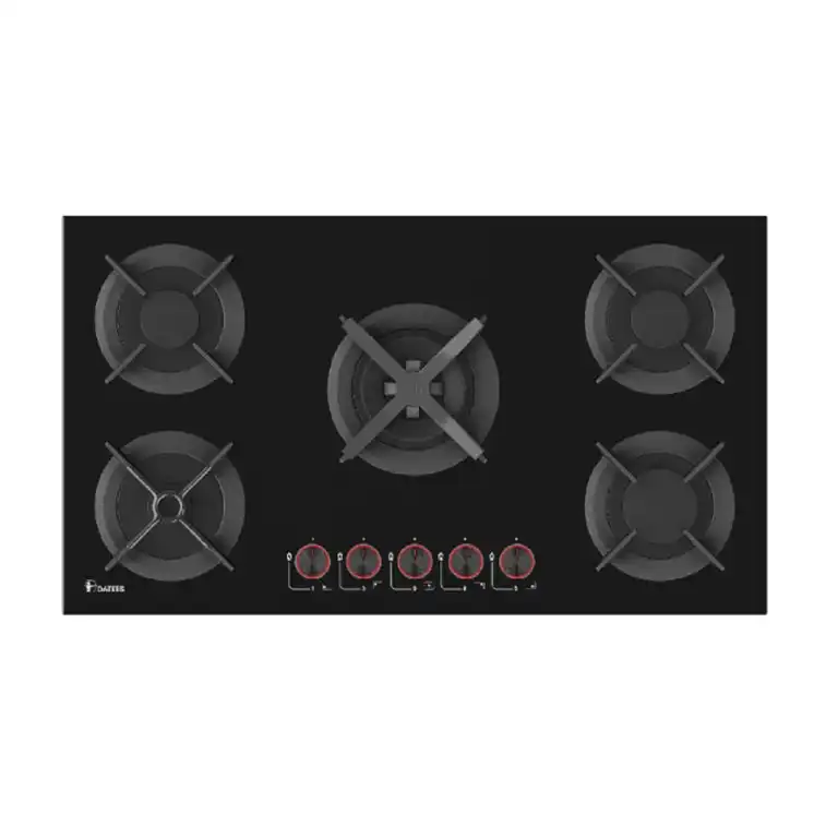 خرید و قیمت گاز صفحه ای و رومیزی مشکی داتیس DG565 ال ای دی دار از جنس شیشه سکوریت 8 میل و 5 شعله، صفحه چدن 5 تکه و سرشعله های ایتالیایی با کیفیت. ولوم های زاماک و زیرولومی ، بوبین شیر ORKLI اسپانیا به همراه سیم فندک لورنزو ایتالیا