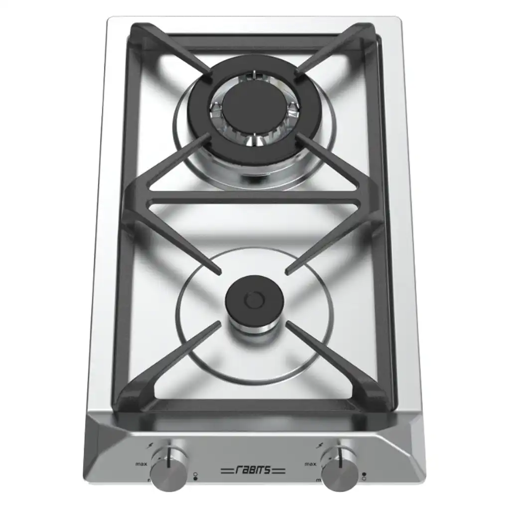خرید و قیمت گاز صفحه ای و رومیزی رابیتس RS-252 از جنس استیل و 2 شعله، صفحه چدن 1 تکه و ترموکوپل تاپ تایم اورکلی اسپانیا