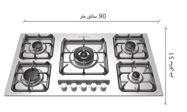 • ابعاد شعله ها : 1عدد شعله پلوپز،1عدد شعله بزرگ،2عدد شعله متوسط،1عدد شعله کوچک