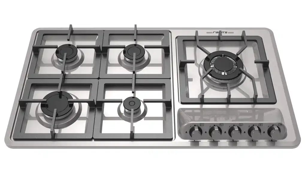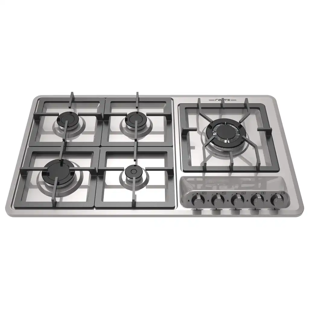 خرید و قیمت گاز صفحه ای و رومیزی رابیتس RS-515 از جنس استیل و 5 شعله، صفحه چدن 5 تکه و ترموکوپل تاپ تایم اورکلی اسپانیا
