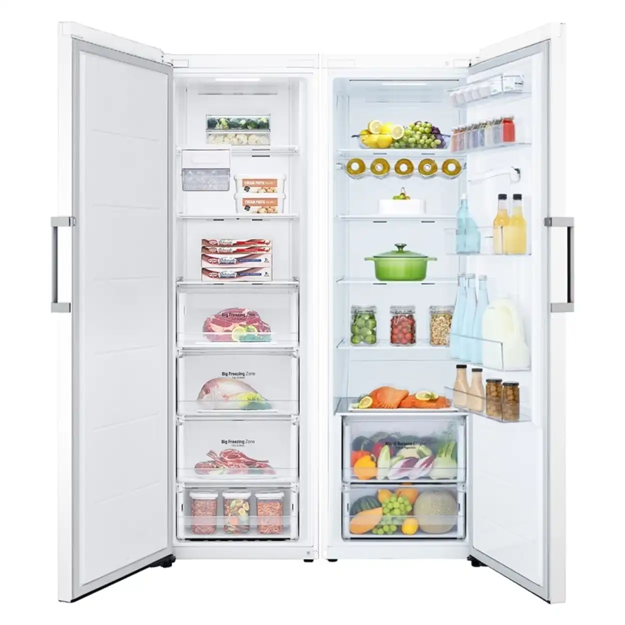 یخچال فریزر دوقلو 27 فوت ال جی مدل GC-F411EQDM و GC-B414EQFM رنگ سفید یک یخچال استاندارد با ابعاد مناسب است که برای کسانی که دنبال یخچال فریزر با ظرفیت بالا هستند بسیار ایده آل است. زیرا این یخچال فریزر LG به رنگ سفید دارای ظرفیت داخلی 766 لیتر است. موقعیت فریزر چپ در این یخچال، دسترسی به مواد داخل فریزر را بسیار آسان نموده.
