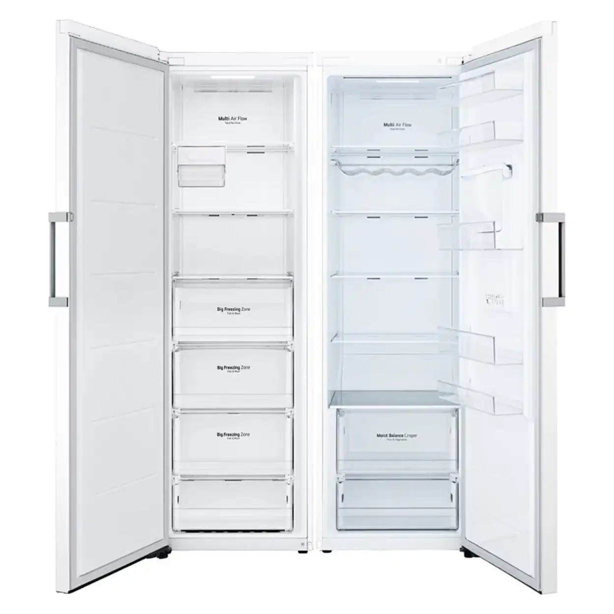 یخچال فریزر رنگ سفید ال جی LG تعداد قابل قبولی کشو و طبقات مناسب برای جایگذاری انواع مواد غذایی را  دارد.