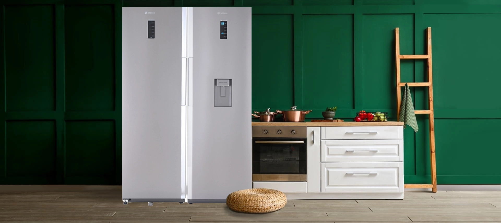 ظاهر شکیل با رنگ استیل، دستگیرههای مخفی و پنل نمایشگر لمسی LED، ظاهری لوکس و یکدست به این مدل بخشیدهاند. طراحی SD به شما اجازه میدهد بدون باز کردن کامل دربها، به بخشهای مختلف دسترسی داشته باشید.