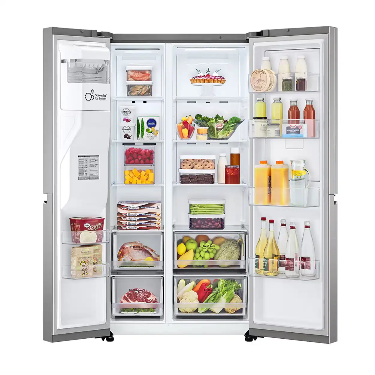 یخچال فریزر ساید بای ساید ال جی LG مدل GC-J257SLSS یک یخچال استاندارد با ابعاد مناسب است که برای کسانی که دنبال یخچال فریزر با ظرفیت بالا هستند بسیار ایده آل است. زیرا این یخچال فریزر LG به رنگ نقره ای دارای ظرفیت داخلی 674 لیتر است. موقعیت فریزر چپ در این یخچال، دسترسی به مواد داخل فریزر را بسیار آسان نموده.