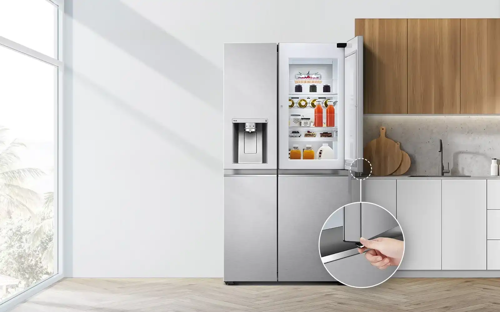 یخچال فریزر ال جی دور این دور مدل J287 دارای ظرفیت مفید 674 لیتر بوده و مجهز به کنترل پنل LED تمام لمسی با طراحی صنعتی جدید می‌باشد.