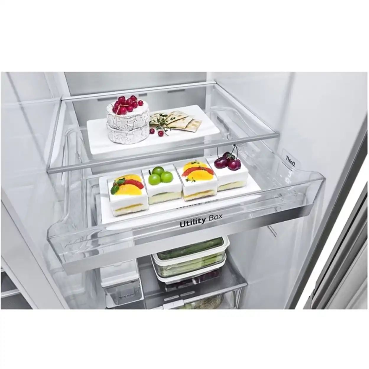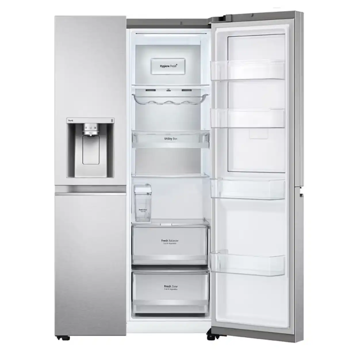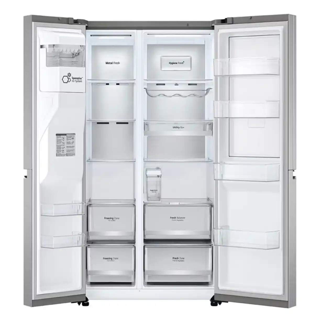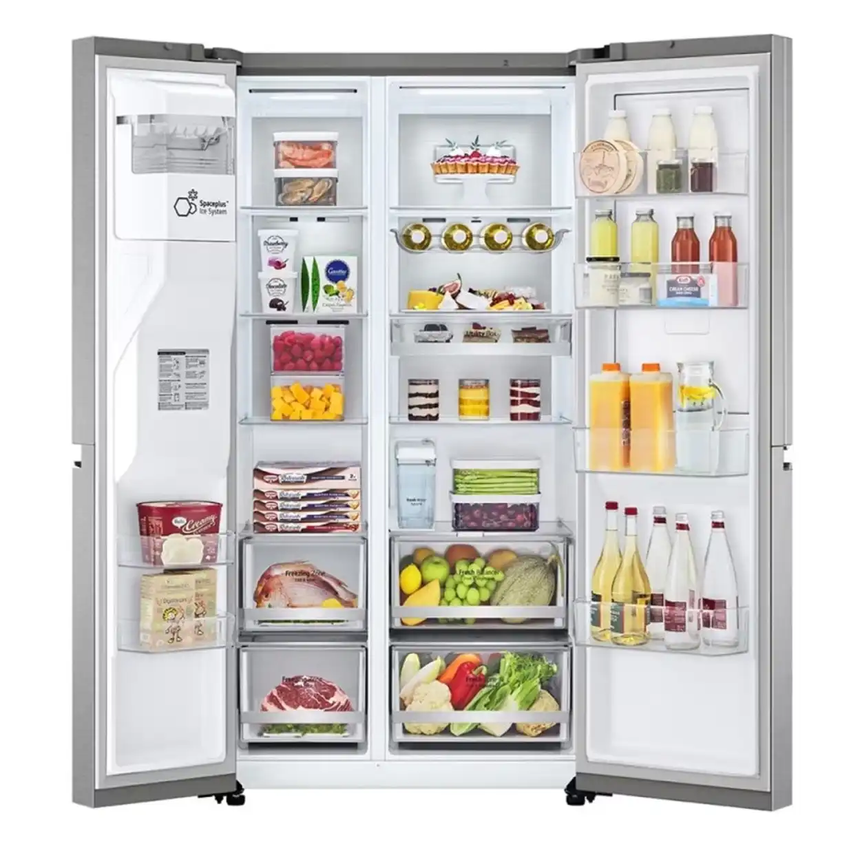خرید و قیمت یخچال فریزر ساید بای ساید ال جی مدل GCJ-287TNL رنگ نقره ای، Door in Door با ظرفیت 674 لیتر و موقعیت فریزر چپ با بهترین قیمت به صورت نقد و اقساط در فروشگاه کارینوشاپ نمایندگی فروش یخچال ال جی.