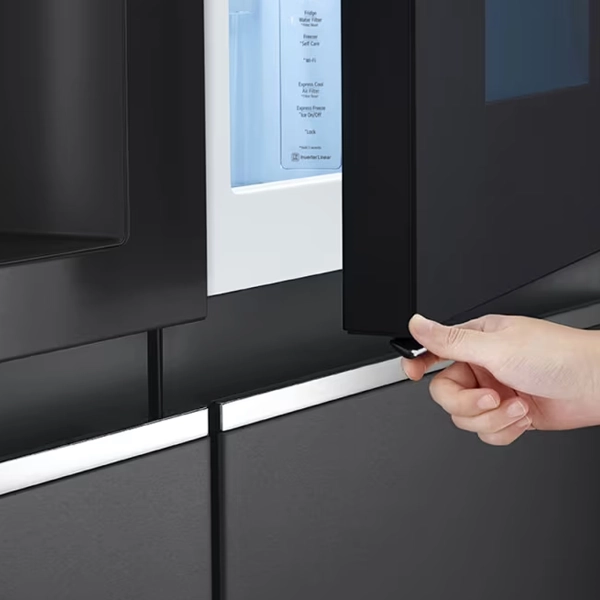 خرید و قیمت یخچال فریزر ساید بای ساید ال جی مدل GCX287TNB رنگ مشکی مات، اینستاویو، Door in Door با ظرفیت 674 لیتر و موقعیت فریزر چپ با بهترین قیمت به صورت نقد و اقساط در فروشگاه کارینوشاپ نمایندگی فروش یخچال ال جی.