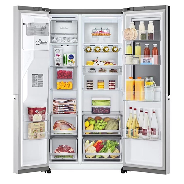 یخچال فریزر ساید بای ساید ال جی LG مدل GRX267CSHS یک یخچال استاندارد با ابعاد مناسب است که برای کسانی که دنبال یخچال فریزر با ظرفیت بالا هستند بسیار ایده آل است. زیرا این یخچال فریزر LG به رنگ نقره ای دارای ظرفیت داخلی 674 لیتر است. موقعیت فریزر چپ در این یخچال، دسترسی به مواد داخل فریزر را بسیار آسان نموده.