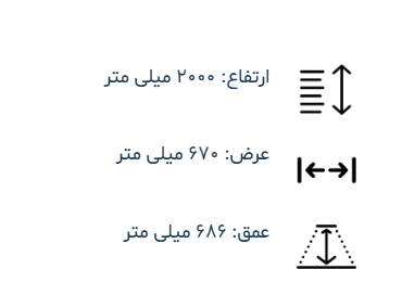 - ابعاد محصول (میلیمتر): عرض 670، عمق 686، ارتفاع 2000